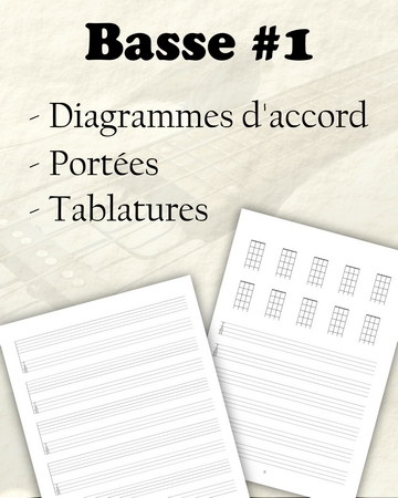 Ce cahier de musique vous offre la possibilité de noter simplement vos lignes de basse!